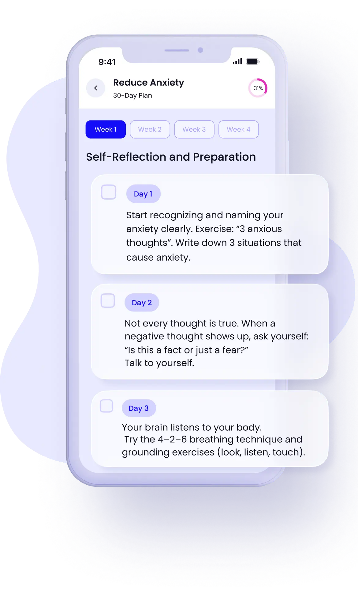 Forget one-size-fits-all plans. Attainify starts by understanding you: your habits, mindset, and goals. Our science-based CBT + AI system creates a step-by-step plan that fits your lifestyle — so progress finally feels natural, not forced.
